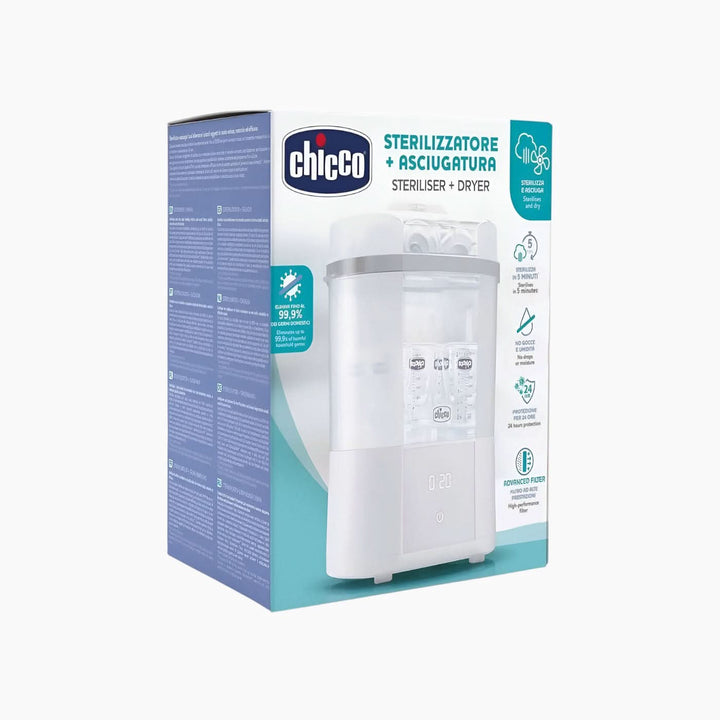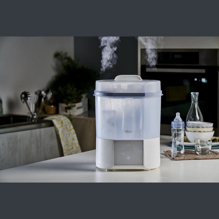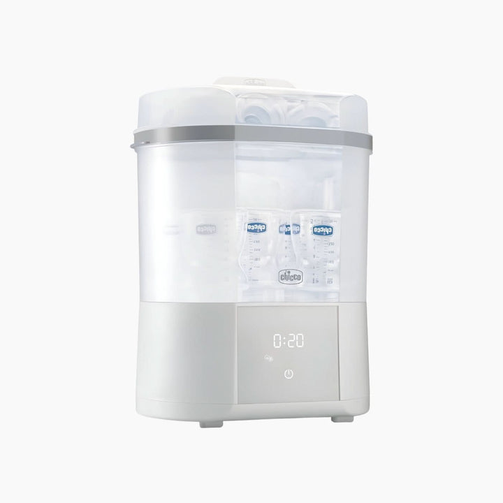 في الأشهر الأولى من حياة طفلك، يُعد التعقيم أمرًا بالغ الأهمية لأن جهازه المناعي لا يزال في طور النمو وحساسًا جدًا للجراثيم. يُبسط معقم شيكو هذه العملية ليس فقط من خلال تعقيم الزجاجات والملحقات، بل أيضًا من خلال تجفيفها بكفاءة. بفضل قدرته على التعامل مع كل من الزجاجات الممتلئة بالكامل والزجاجات الممتلئة جزئيًا، يوفر الجهاز مرونةً بفضل برامجه الأربعة المتاحة. دورة التعقيم سريعة بشكل مذهل، لا تستغرق سوى دقائق معدودة دون الحاجة إلى تسخين. باستخدام البخار الساخن فقط، يقضي الجهاز على الجراثيم الضارة بفعالية، بينما تزيل عملية التجفيف الرطوبة والتكثف. بالإضافة إلى ذلك، يلتقط الفلتر عالي الأداء جزيئات الغبار والأوساخ الصغيرة، مما يضمن بقاء الزجاجات معقمة لمدة تصل إلى ٢٤ ساعة طالما ظل الغطاء مغلقًا.