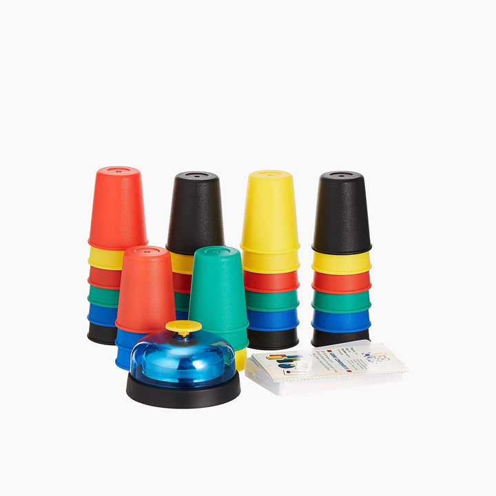 - Enhances fine motor skills and hand-eye coordination as players race to arrange their cups.