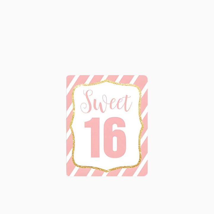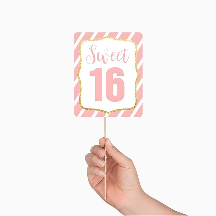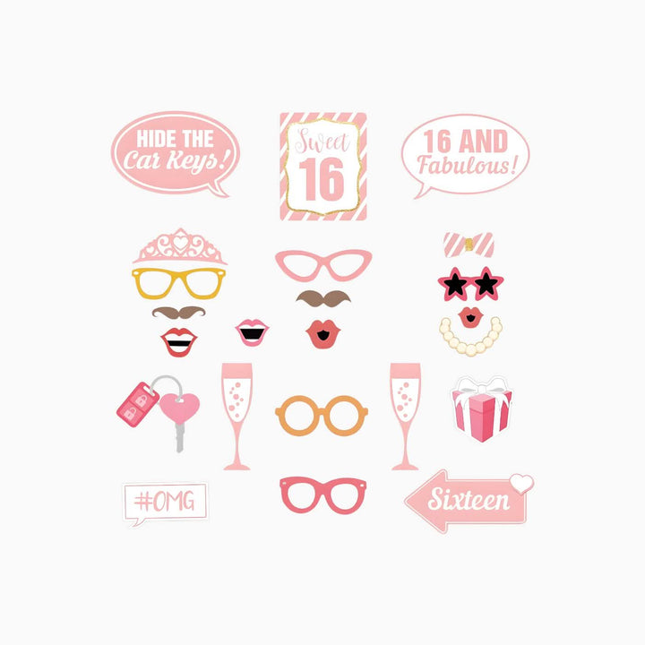 تتضمن مجموعة متنوعة من الدعامات: تيجان براقة، ونظارات شمسية أنيقة، وعلامات مرحة، وأرقام "16" مقطوعة.