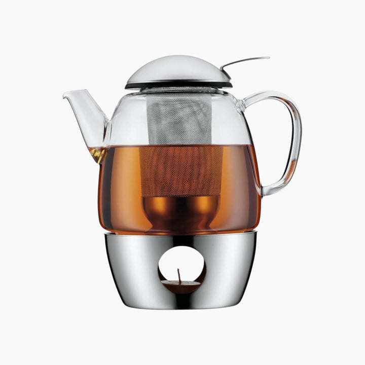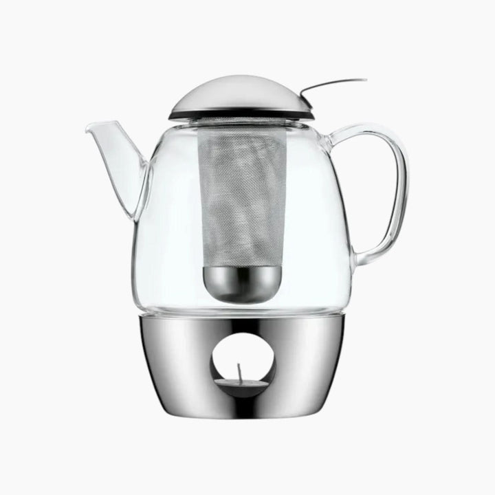 - إبريق شاي زجاجي سعة لتر واحد مع غطاء من الفولاذ المقاوم للصدأ