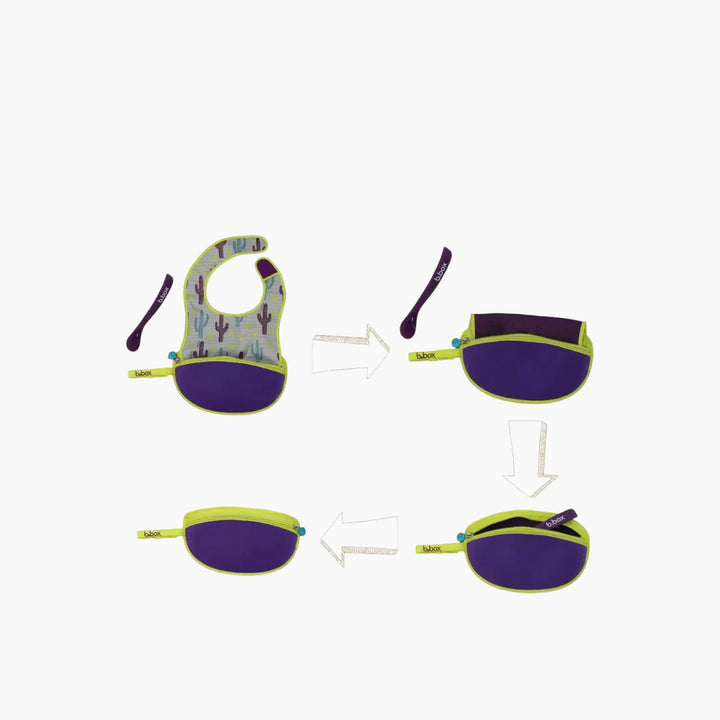 Designed for stylish parents on the go, this travel bib combines functionality with flair. Crafted to make mealtime mess a breeze, it offers a convenient solution for dining out or on vacation, where convenience is key. The vibrant cactus pattern adds a playful touch, appealing both to toddlers and adults.