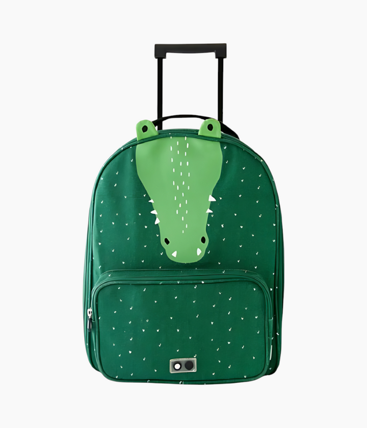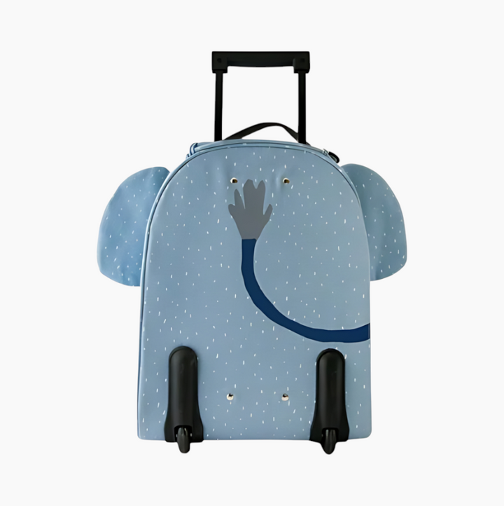 Elevate your child's travel experience with the charming travel trolley. Designed for little adventurers, this trolley offers the ideal blend of practicality and fun. Featuring a telescopic handle and sturdy wheels, it allows kids to navigate with ease. A spacious front pocket keeps essentials readily accessible, while inside, a name tag, zippered pocket, and buckle ensure clothes stay neatly packed.