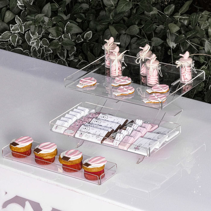 طقم القاعدة الأكريليكية X ليس أنيقًا فحسب، بل عملي أيضًا، مما يجعله مثاليًا لمختلف المناسبات. سواء كنت تقدم الطعام، أو تنظم أغراضك، أو تعرض الحلويات، فإن هذه الصواني ستضفي لمسةً مميزة على عرضك التقديمي.