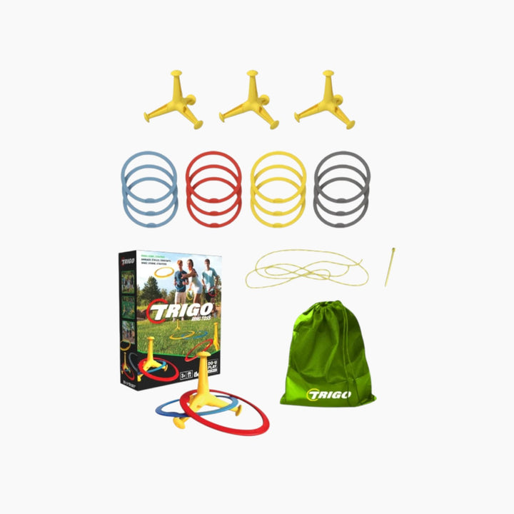 - Comprehensive Set: Includes 3 Trigo stars, a throw line, measuring stick, and 4 sets of rings in blue, red, yellow, and grey.