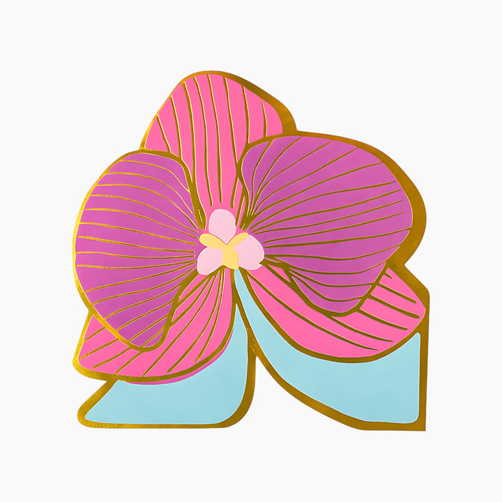 أضفِ لمسةً من البهجة إلى طاولتك مع هذه المناديل الورقية الرائعة للاستخدام مرة واحدة على شكل زهرة الأوركيد! تتميز هذه المناديل بتصميم نابض بالحياة بألوان زاهية ولمسات من رقائق الذهب، وهي مثالية لإضفاء لمسة من الأناقة والمرح على أي احتفال. مثالية لحفلات أعياد الميلاد ذات الطابع الخاص، وحفلات الحديقة، والمناسبات الخاصة، حيث تجمع هذه المناديل بين العملية والتصميم الجميل.