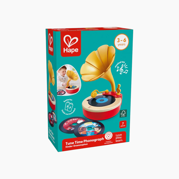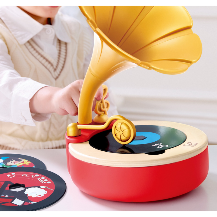 Introduce young minds to the enchanting world of music with the Tune Time Phonograph Toy. This classic-inspired musical toy invites toddlers to explore sound discovery and musical appreciation. Crafted from high-quality natural wood and safe plastic, it combines an elegant vintage design with engaging, child-friendly features. As little ones turn the easy-grip handle, they activate a rotating music disc that fills the room with cheerful melodies. The vibrant sound horn amplifies tunes, making it a delightful sensory experience that promotes auditory development and fine motor skills.