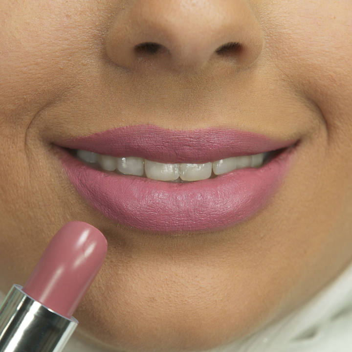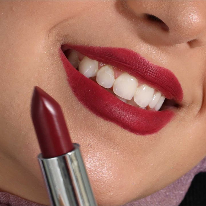 أحمر شفاه كريمي مخملي مغذي بلون مميز.