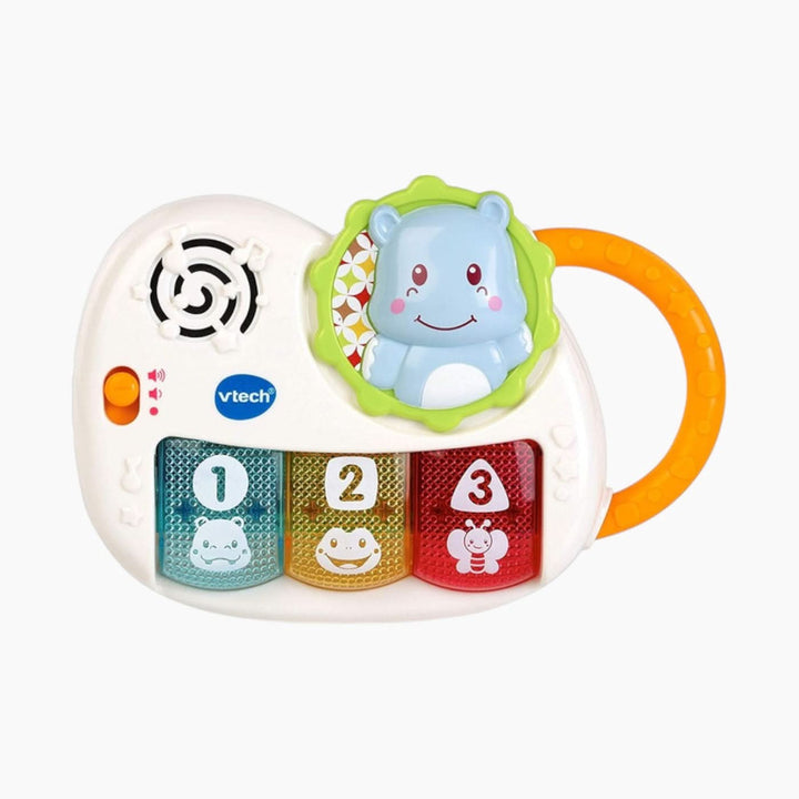 - بيانو إلكتروني مضيء: يتضمن ثلاثة أزرار تفاعلية تعزز التعلم المبكر مع تعريف الألوان، الأشكال، الأرقام، والحيوانات.