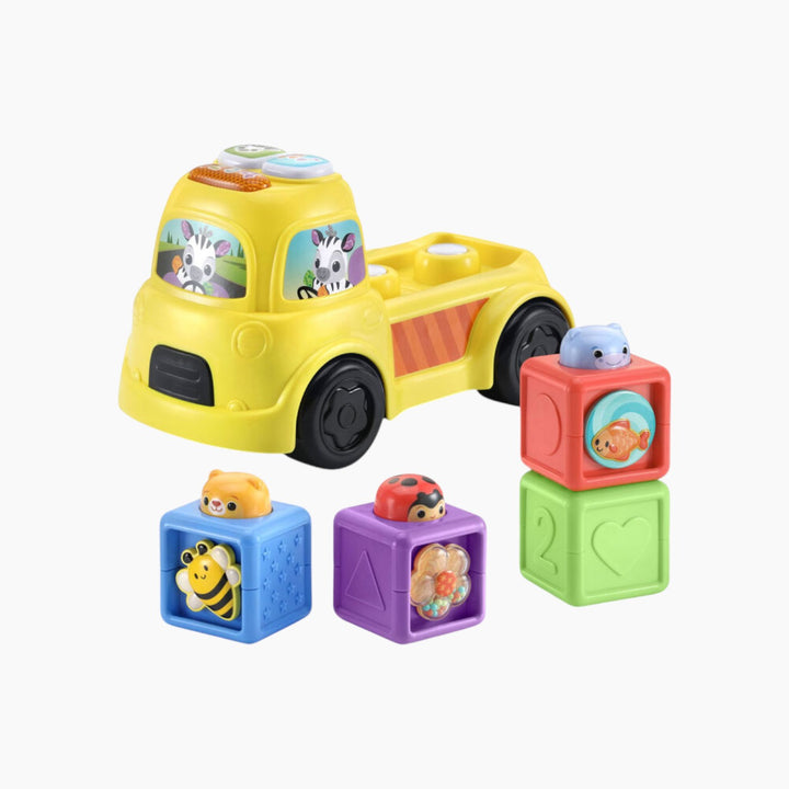 - Interactive Truck and Blocks: Includes a push-along truck and four animal-themed blocks, each showcasing unique movements when pressed, fostering fine motor skills and curiosity.