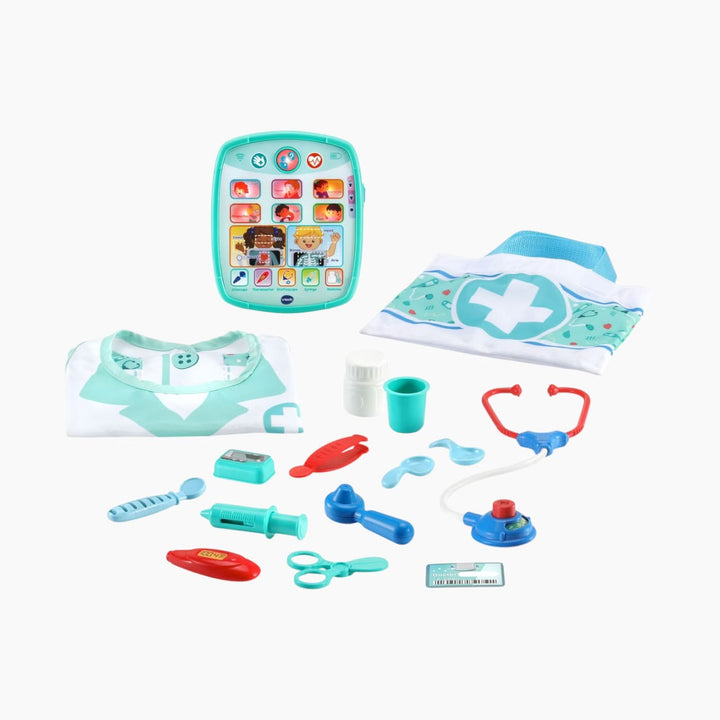 قم بتحويل وقت اللعب إلى مغامرة تعليمية مع مجموعة الطب الذكية، وهي مجموعة لعب تفاعلية مصممة لإلهام الأطباء الناشئين الذين تتراوح أعمارهم بين 3 سنوات وما فوق. تتضمن هذه المجموعة الشاملة جهاز لوحي طبي تفاعلي و16 أداة طبية أساسية مثل سماعة الطبيب، وميزان الحرارة، وملقط الحاجب، والحقنة. يمكن للمتعلمين الصغار تحويل أنفسهم إلى أطباء مع الزي الجذاب والاحتفاظ بأدواتهم المنظمة في حقيبة تخزين مفيدة.