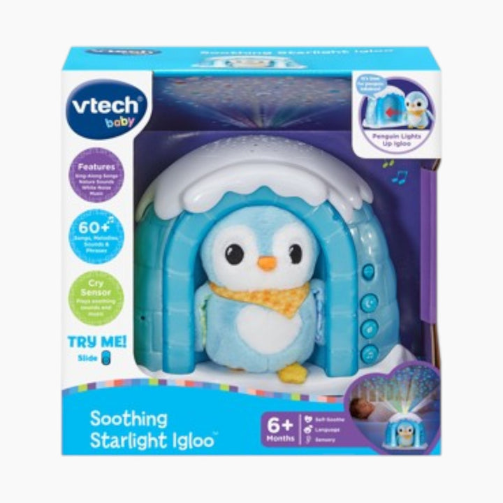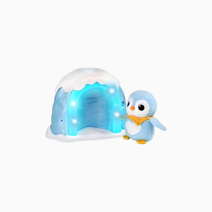 Transform bedtime into a magical experience with the soothing starlight igloo, designed for children aged 6 months and up. This enchanting product features a light-up igloo with a removable plush penguin, projecting twinkling stars onto the ceiling or serving as a gentle nightlight. With customizable controls, parents can easily adjust the sound, light, and timer settings to create the perfect ambiance for a peaceful sleep environment.