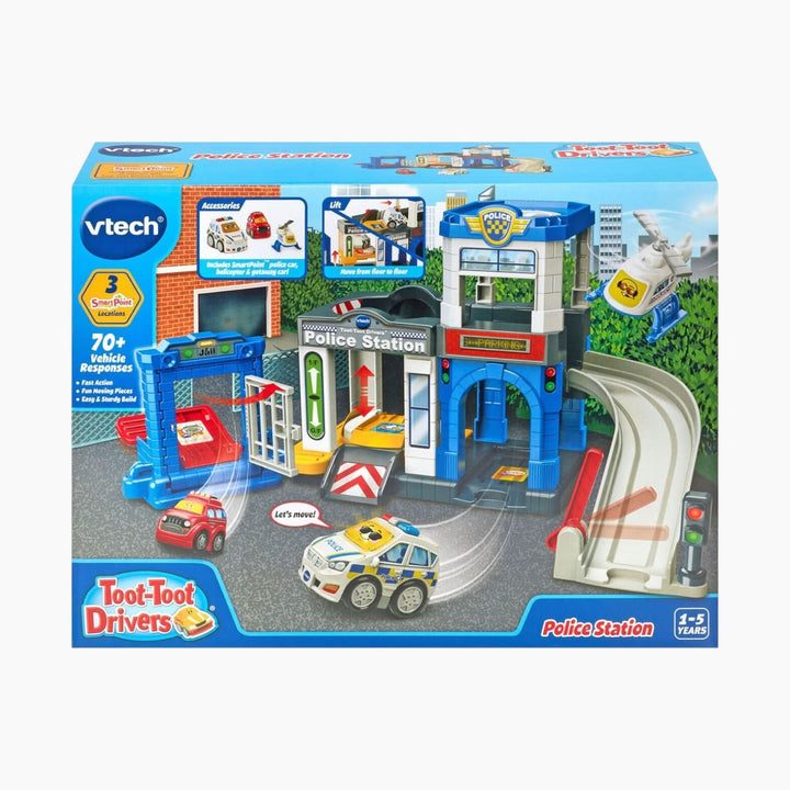 الميزات: - تقنية SmartPointer: تتضمن سيارة شرطة تقوم بتنشيط عبارات وأصوات في 3 نقاط محددة. - إثارة اللعب الدوري: تتميز بباب سجن سريع الإطلاق، ومنحدر طوارئ، ورافعة دوارة لحركة سيارة ديناميكية. - تأثيرات موسيقية وواقعية: استمتع بـ 3 أغانٍ للغناء معها، و 6 ألحان موسيقية، وتأثيرات صوتية واقعية مثل صفارات الإنذار. - عناصر إضافية: تأتي مع سيارة هروب صغيرة ومروحية لتعزيز سيناريوهات اللعب.