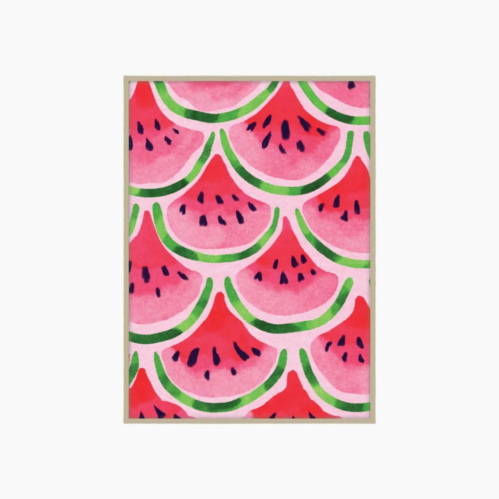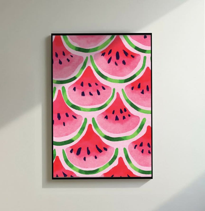نقدم لكم العمل الفني النابض بالحياة والمرح بعنوان "بطيخ" للفنان علي الشال، والذي يجمع ببراعة بين العملية والأناقة. هذه القطعة مثالية لإضافة لمسة لونية مميزة إلى مساحتكم. تنبض طاقة الصيف في لوحة "بطيخ" للفنان علي الشال. تتميز هذه اللوحة المرحة، مقاس 30×40 سم، بنمط جريء ومتكرر من شرائح البطيخ اللذيذة، مرسومة بألوان مائية ودرجات زاهية من الأحمر والوردي والأخضر والكحلي الداكن. تثير هذه اللوحة شعورًا بالبهجة والحنين، تذكرنا بأيام الرخاء والحلويات الموسمية اللذيذة. هذه القطعة، المؤطرة بالخشب الطبيعي، تضفي لمسة من المرح والانتعاش على المطابخ وغرف اللعب أو أي مساحة أخرى تحتاج إلى تعزيز مزاجها.