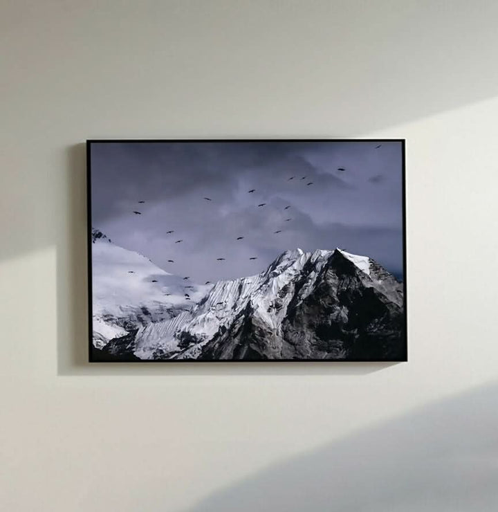 نقدم لكم لوحة "البراري" للفنان عبد العزيز العطار، وهي صورة فوتوغرافية خلابة تجمع بين العملية والأناقة. تجسد هذه اللوحة روعة الطبيعة الأخّاذة بأسلوب درامي. "البراري" قصيدة درامية تُعبّر عن روعة الطبيعة الأخّاذة. تلتقط هذه الصورة الآسرة، مقاس 40×30 سم، مشهدًا خلابًا آسرًا: قممٌ مُغطاة بالثلوج تحت سماءٍ عاصفة، وسربٌ من الطيور يُحلّق عبر الإطار. يُثير تفاعل الحركة والسكون، والضوء والظل، شعورًا قويًا بالحرية والعزلة والبقاء. تُعبّر الصورة، المُثبتة في إطار أبيض ناصع، عن روح الطبيعة الصامدة، وهي مثالية لمن ينجذبون إلى ما هو جامح وسامي.