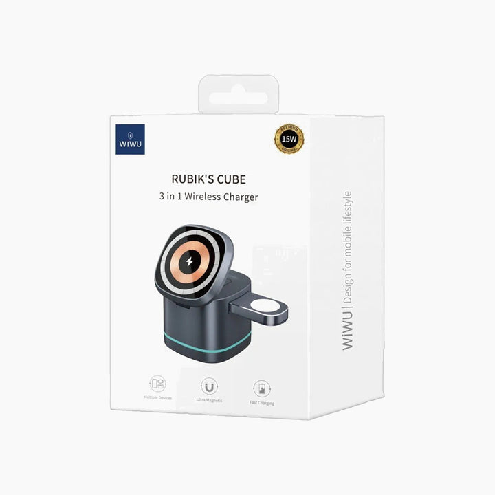 Elevate your charging experience with the WiWU W024 RUBIK’S CUBE 3 in 1 Wireless Charger. This innovative device offers a seamless and efficient way to power up your essential gadgets, combining smart technology with sophisticated design.