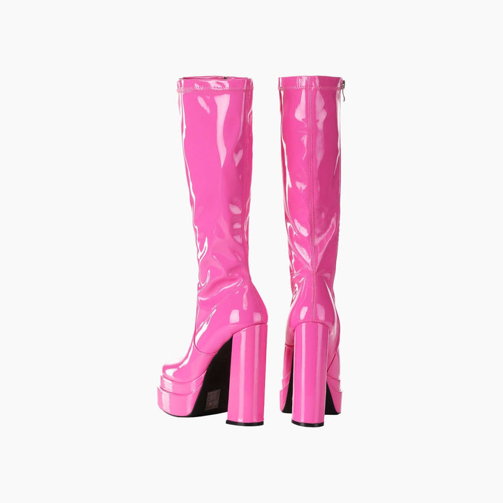 - التصميم: يصل إلى الركبة مع مقدمة مستديرة وكعب عريض ثابت