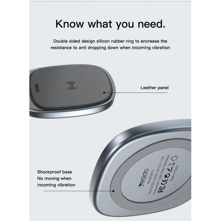 Experience a seamless blend of cutting-edge technology and elegant design with the YESIDO DS11 Wireless Charger. This 15W powerhouse delivers rapid charging while its sophisticated aesthetic enhances any workspace or bedside.