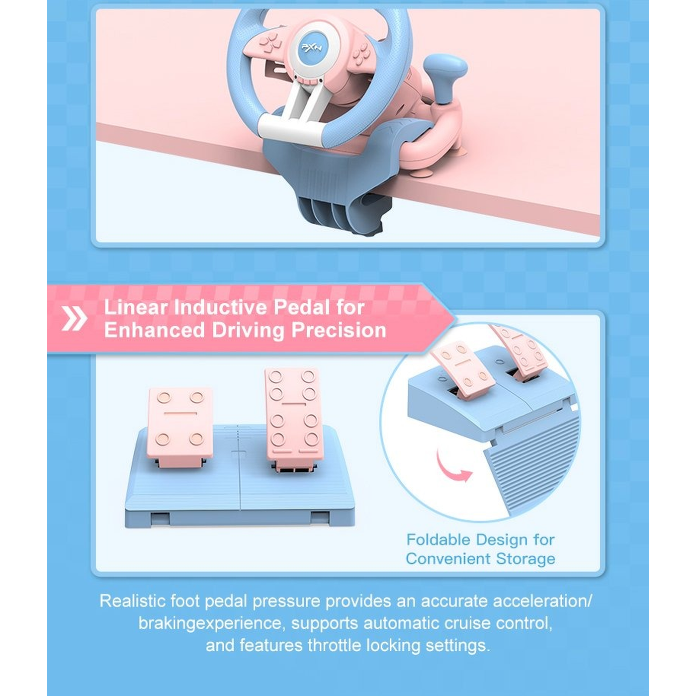 Pxn Steering Wheel V3Pro( Pink and Blue ) - https://shophuna.com/products/pxn-v3pro-1071?variant=52987519828252