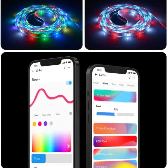 Illuminate your space with the SONOFF L3 Pro RGBIC Smart LED Strip Lights. Featuring dynamic RGBIC technology, these LED strips offer independently adjustable segments for vibrant,...