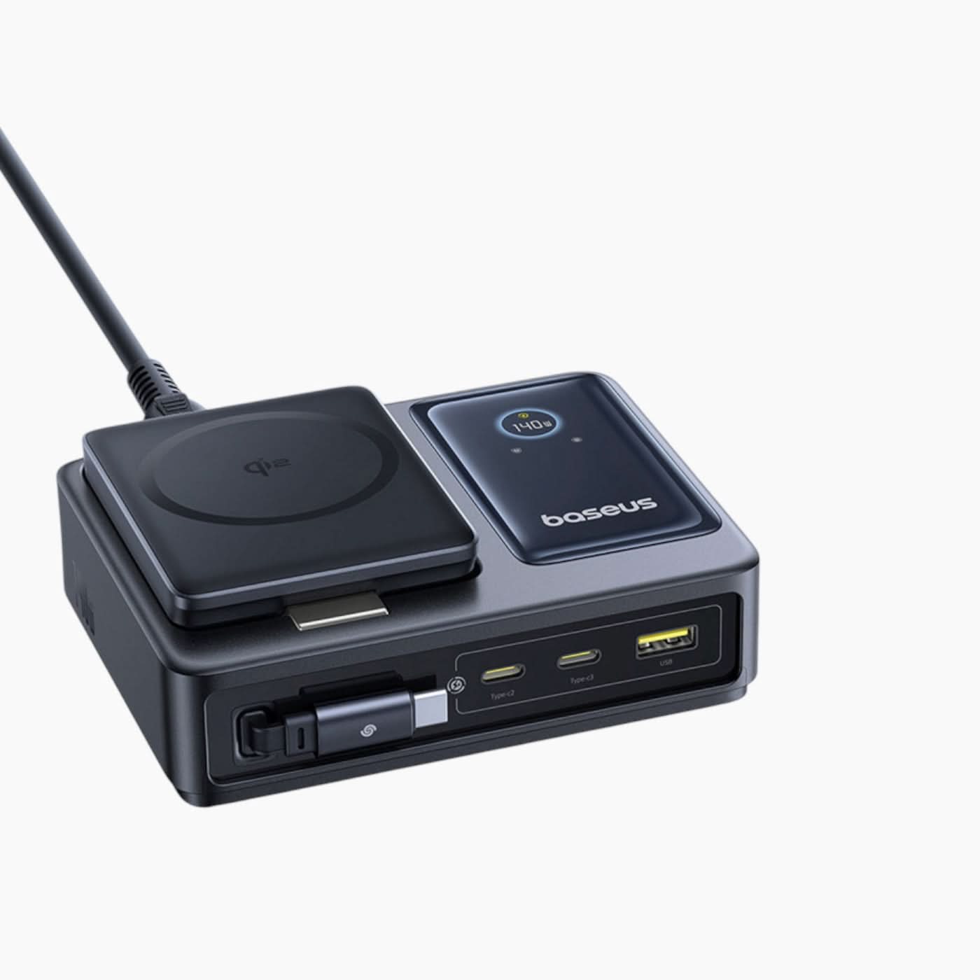 Baseus Nomos 5-in-1 Desktop Charger Qi2 140 W( Cosmic Black ) - https://shophuna.com/products/baseus-nomos-5-in-1-desktop-charger-qi2-140w-1052?variant=51207270334748