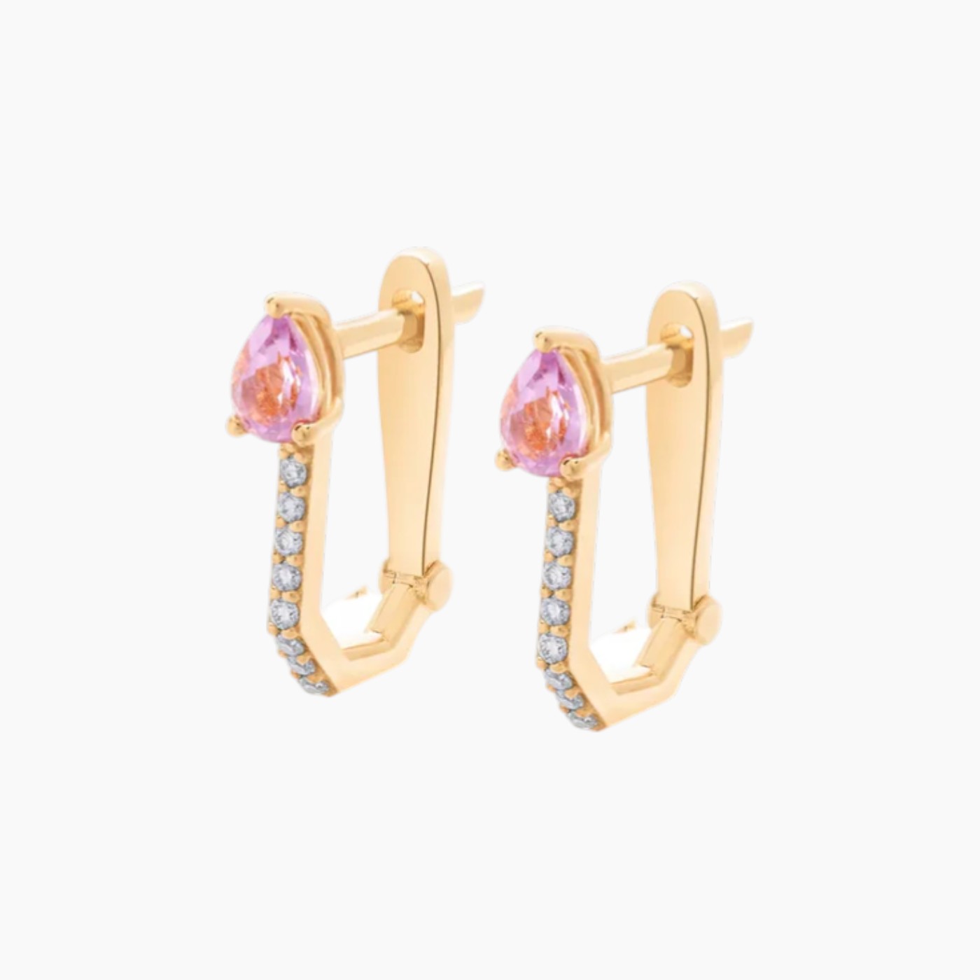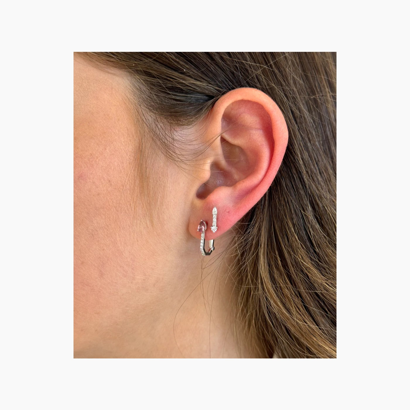 Pink Tourmaline Pear Cut Rectangle Studded Hoops( Silver ) - https://shophuna.com/products/pink-tourmaline-pear-cut-rectangle-studded-hoops-1001?variant=53894655607068