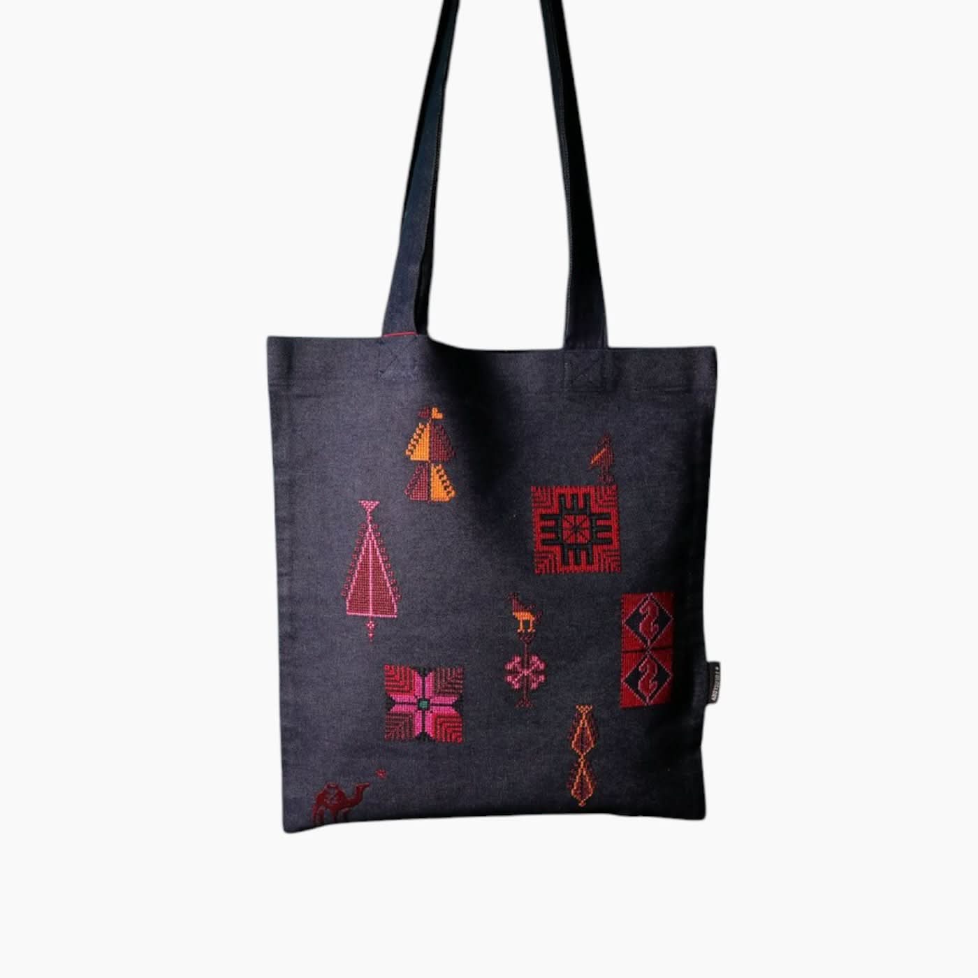 Folkglory Palestinian Motifs Denim Tote Bag( Default Title ) - https://shophuna.com/products/palestinian-motifs-denim-tote-bag-1015?variant=51347074580764
