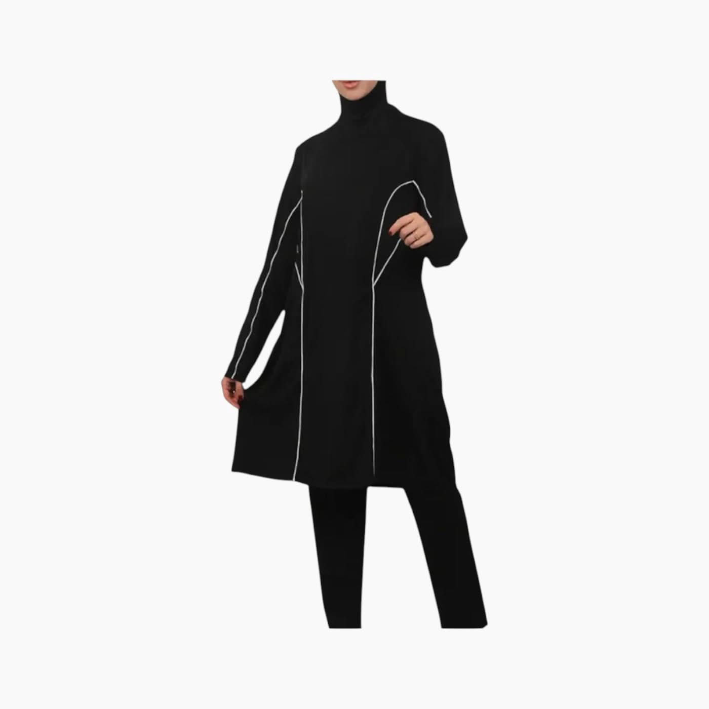 Adasea Full Covered Hijab Swimwear( Black ) - https://shophuna.com/products/adasea-2221-modest-long-burkini-swimsuit-1023?variant=52835270852892