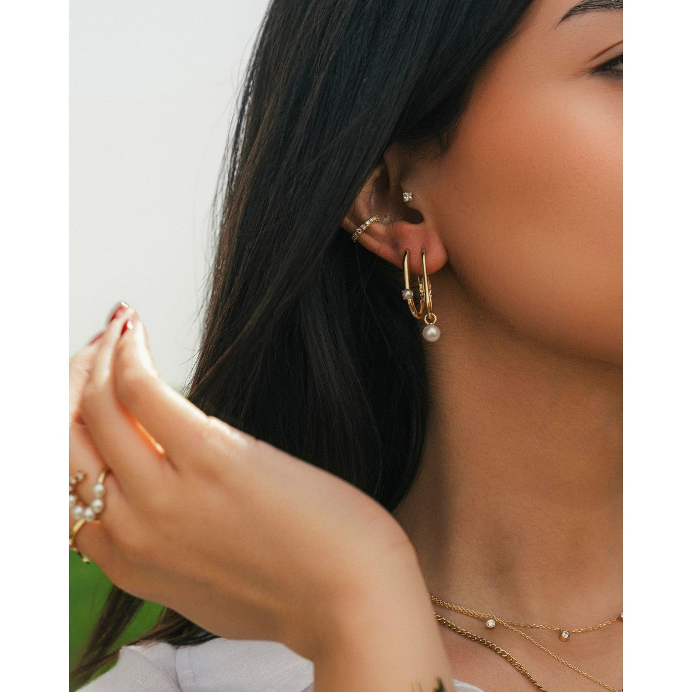 Add timeless sophistication with the Joy Jewels Long Pearl Drop Earrings. Crafted from 18-karat gold with lustrous cultured pearls, these elegant earrings enhance any ensemble with...