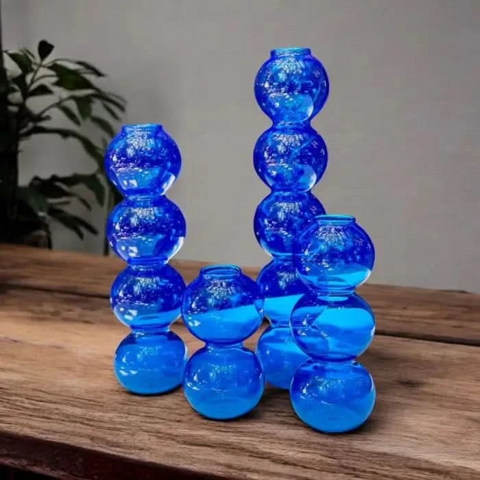 Blue Color Set of Bubble Candle Holders Introducing our stunning set of four candle stands, which beautifully combines functionality and style. Featuring a unique stacked round...