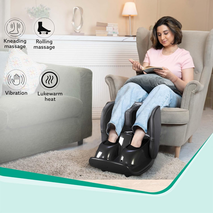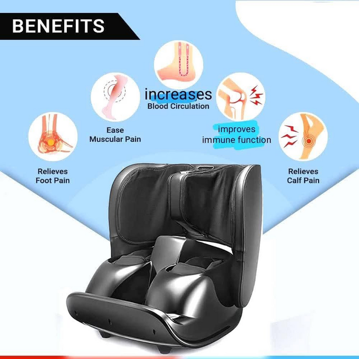A spa‑level, full‑lower‑body massage experience at home, combining targeted calf and foot relief with innovative features like heat, air compression, vibration and rollers. Designed for individuals who spend long hours standing, recovering from workouts, or seeking improved circulation and muscle relaxation, this device brings professional‑grade comfort into everyday life.