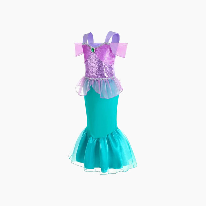 Transform any little girl into an underwater princess with this enchanting Ariel Mermaid Dress, perfect for parties and Halloween festivities. This elegant costume brings the magic of the ocean to life with its vibrant colors and shimmering details. Crafted with care for comfort and style, it's designed to inspire imagination and ensure hours of joyful play. Ideal for fans of fairy tales and sea adventures, this dress is a must-have for any aspiring little mermaid.