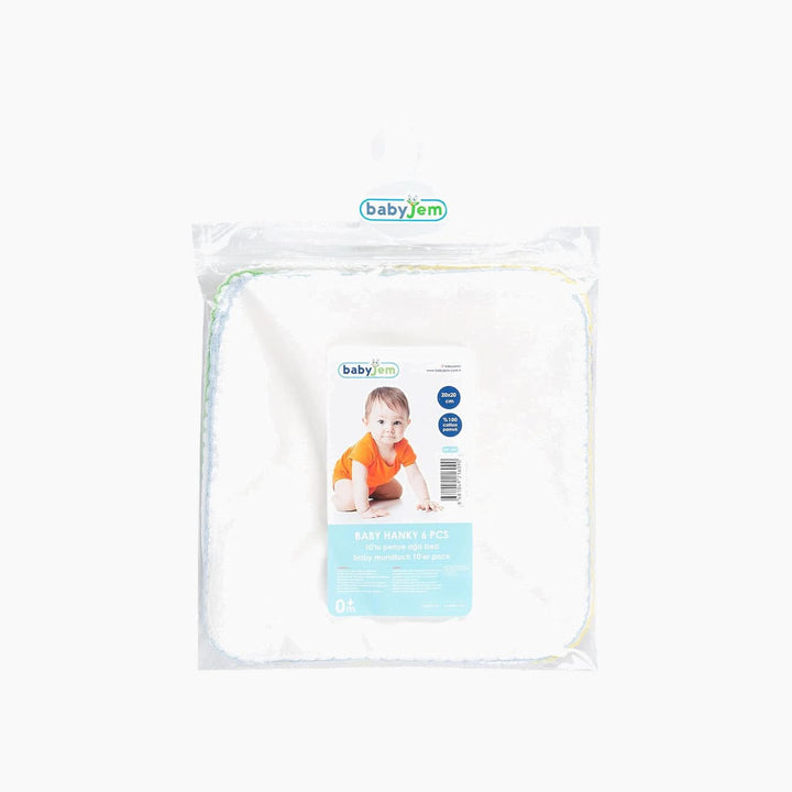 Babyjem Baby Hanky, 10Pcs, %100 Cotton, 0+ Months White