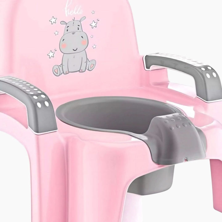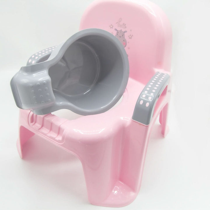 - Sturdy baby potty designed in a chair shape, complete with a backrest and armrests for added comfort.