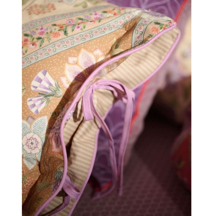 The Ornamento Ramo decorative cushion cover showcases an all-over stitched elegant pattern with colored piping and a tie closure, which adds a lavish look and feel. Additionally, this cushion cover is reversible, allowing for versatile styling options. It complements the Ornamento Ramo duvet cover superbly, creating the ultimate mix and match effect. Available in two unique colors, it is a stylish addition to any home decor.