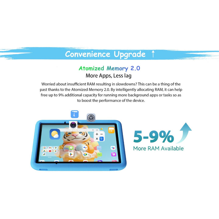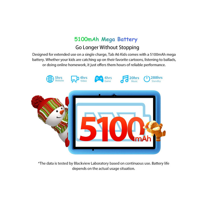 • Long-lasting 5100mAh battery with 10W charging keeps young users engaged for extended periods without frequent interruptions.