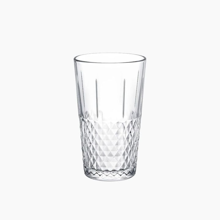 Introducing our elegant set of diamond-patterned highball glasses, which beautifully blend functionality and style. These glasses are perfect for elevating your everyday hydration experience.