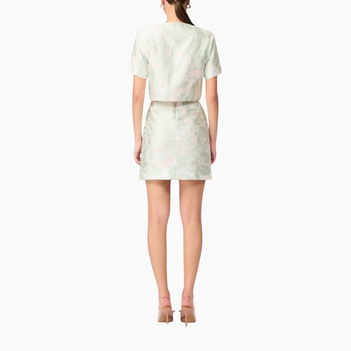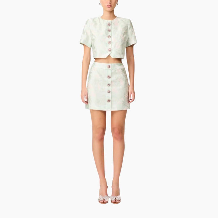 Elevate your wardrobe with a chic two-piece ensemble that effortlessly blends playful charm with sophisticated design. Featuring a cropped top and mini skirt, this set is...