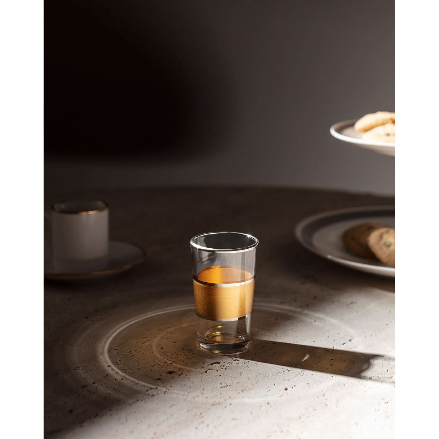 The Chapelle Heike 4 Piece Coffee Side Glasses Set 100 mL adds elegance to every serving. Designed with refined metallic accents, this glass set is ideal...