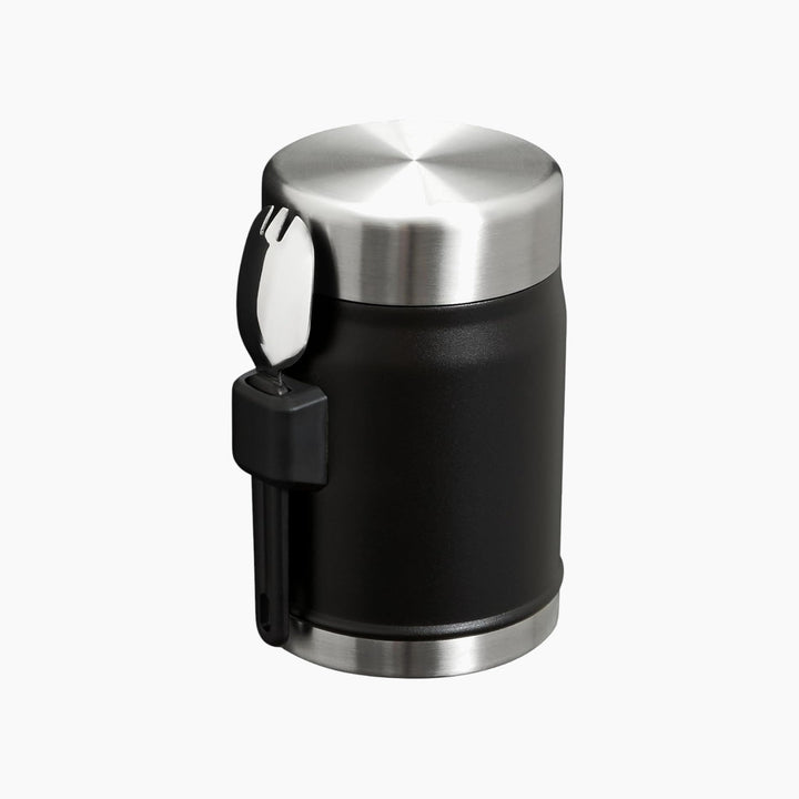 Discover the ultimate companion for your meals on the go: a compact yet spacious insulated food jar. Perfect for camping or travel, this jar keeps your favorite hot or cold recipes perfectly preserved. An easy-to-use pressure-release valve on the insulated lid ensures seamless opening, while the integrated stainless-steel spork conveniently attaches to the side bracket, making it ready whenever you are.
