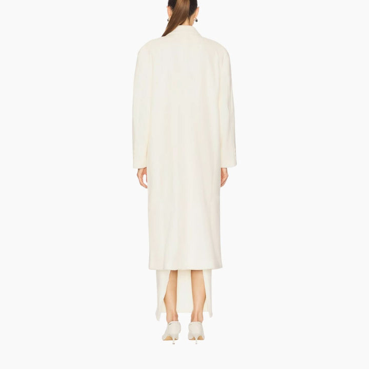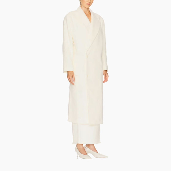 A refined and timeless silhouette, perfect for layering over both casual and formal ensembles. Crafted with a blend of polyester, wool, and viscose, this coat combines warmth with a soft touch, making it an essential piece for cooler seasons.
