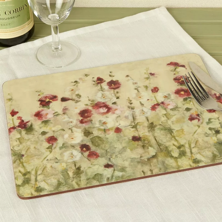 The Premium Poppies Placemats Set includes 6 premium table mats, each measuring 30cm x 22cm x 5cm. The captivating color palette features reds, pinks, and whites on a cream background, making it a perfect addition to any dining table. The placemats are designed with Wild Field Poppies, showcasing a serene impressionist-style illustration that adds a touch of elegance to your meals.
