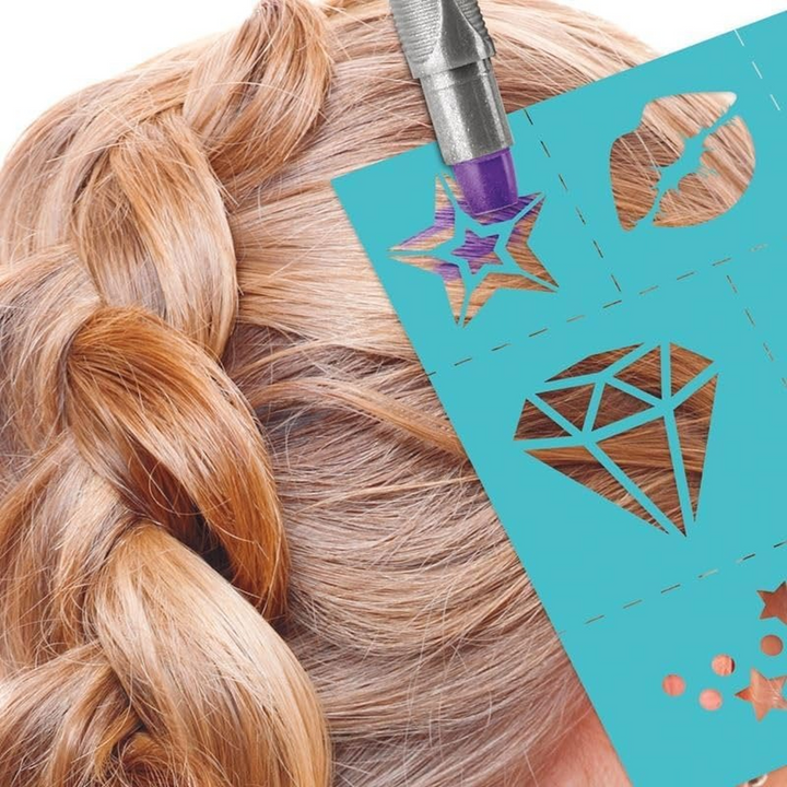 - Includes hair chalk pens and stencils to design colorful strands or patterns in hair.