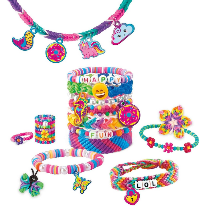 A comprehensive crafting kit designed to inspire creativity in young fashion enthusiasts. This vibrant set enables users to design and create personalized bracelets, charms, and accessories, offering endless possibilities for self-expression and fun.