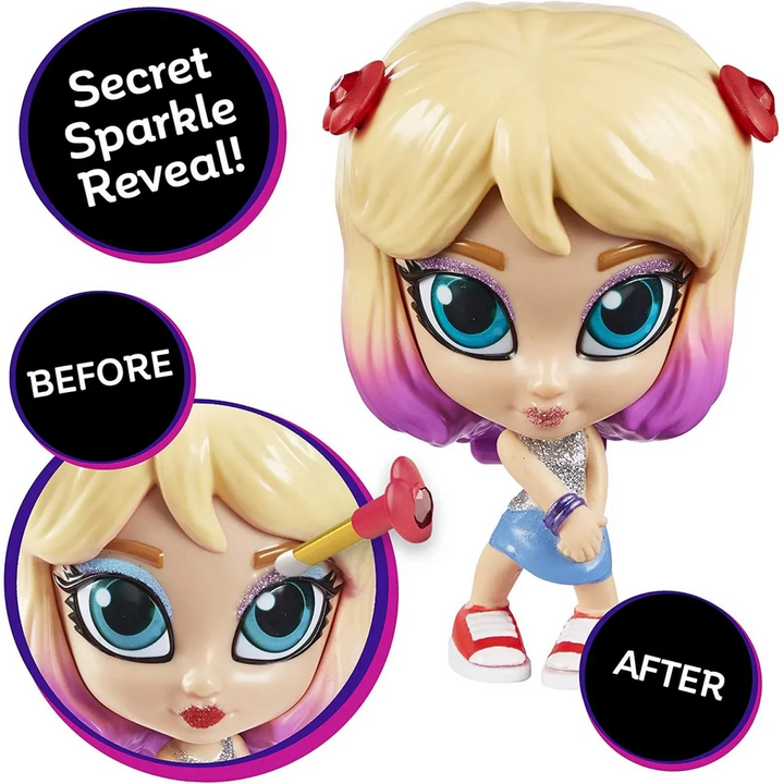 - Interactive makeup play: Use water with the included applicators to reveal sparkly makeup on the doll's eyelids and lips.