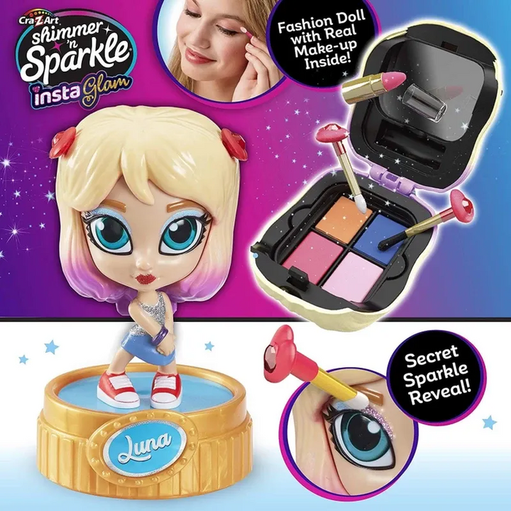 The Shimmer 'n Sparkle InstaGlam Makeup Dolls—Luna and Evie—bring a delightful fusion of fashion and fun to young beauty enthusiasts. These vibrant, poseable dolls feature interactive makeup elements that inspire creativity and imaginative play, making them perfect companions for aspiring makeup artists.