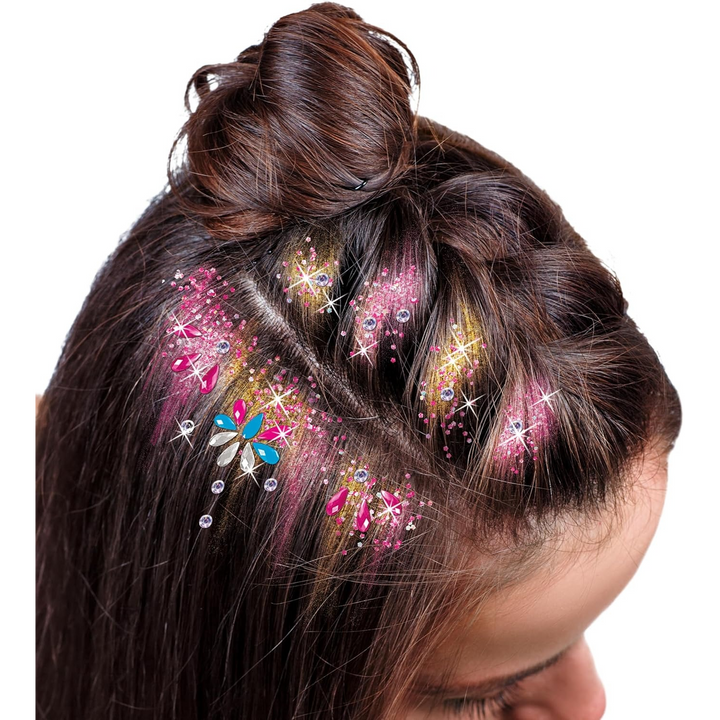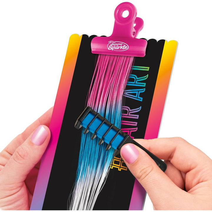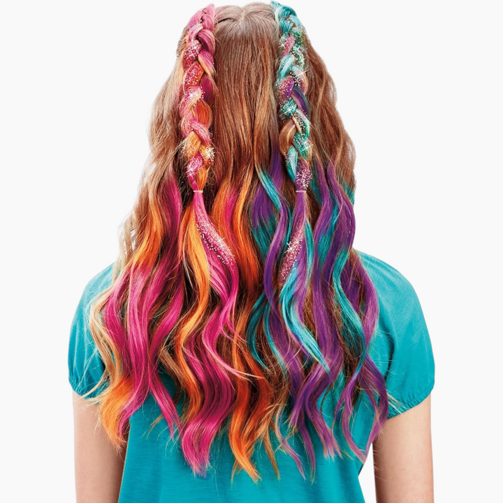 - Allows children to create bold and bright hair extensions with vibrant colors and sparkling glitter.