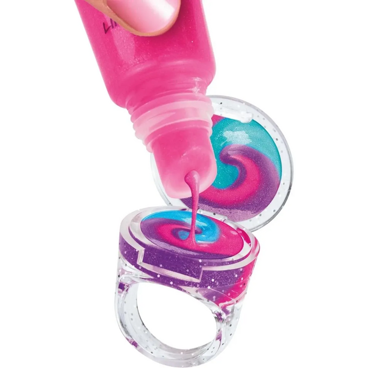 - Includes: lip gloss locket with glitter and gem decorations, 2 refillable lip gloss tubes