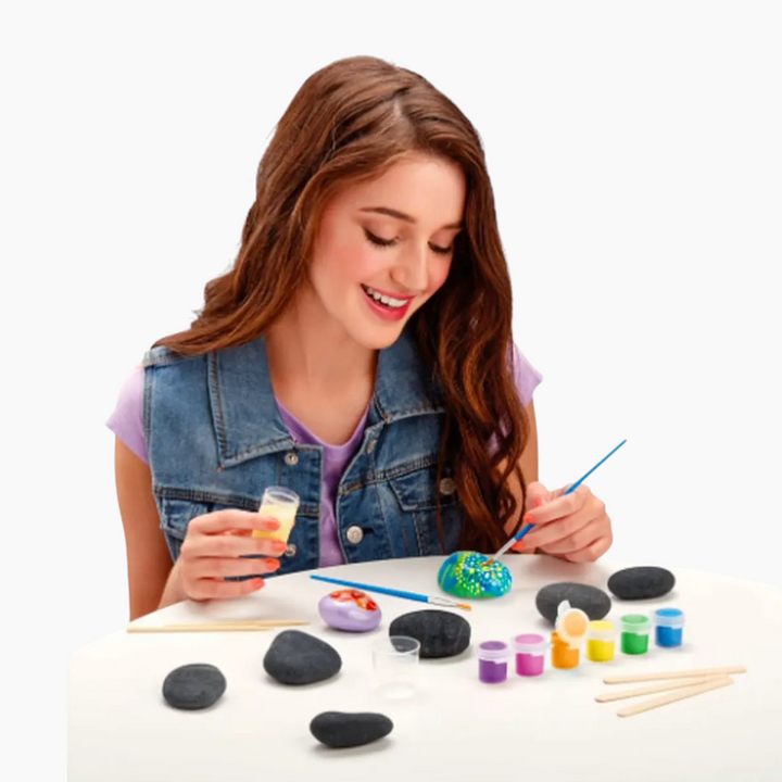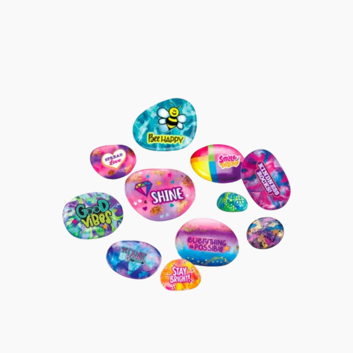 A creative arts and crafts set designed for children aged 8 and above. This DIY kit allows young artists to paint and decorate rocks with vibrant colors and uplifting messages, promoting positivity and self-expression. It's an ideal activity for parties, sleepovers, or a relaxing solo craft session.