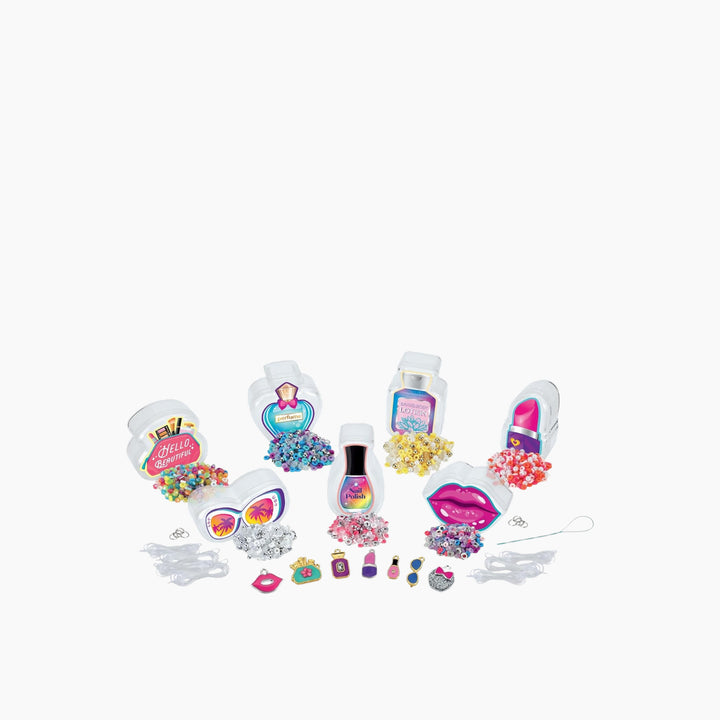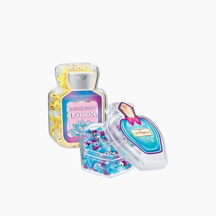 - Features 7 beauty-themed mini containers, including designs like lipstick, perfume, and nail polish.