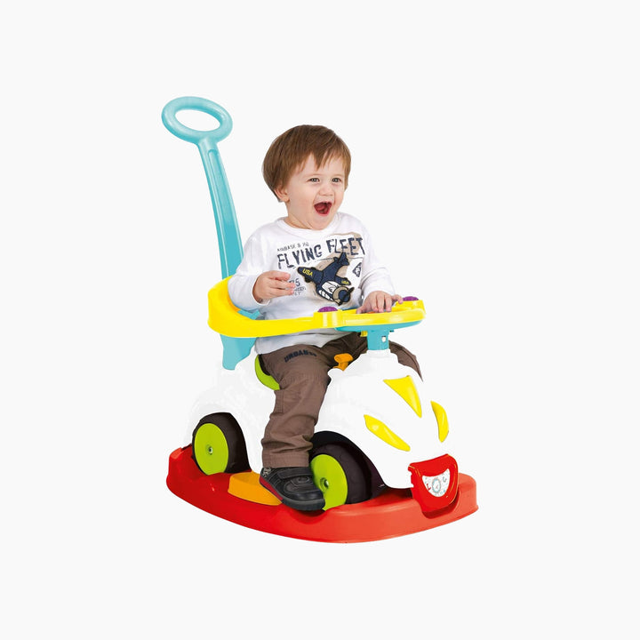 • Transforms through four stages: rocking, riding, walking, and driving, adapting to your child's developmental milestones.